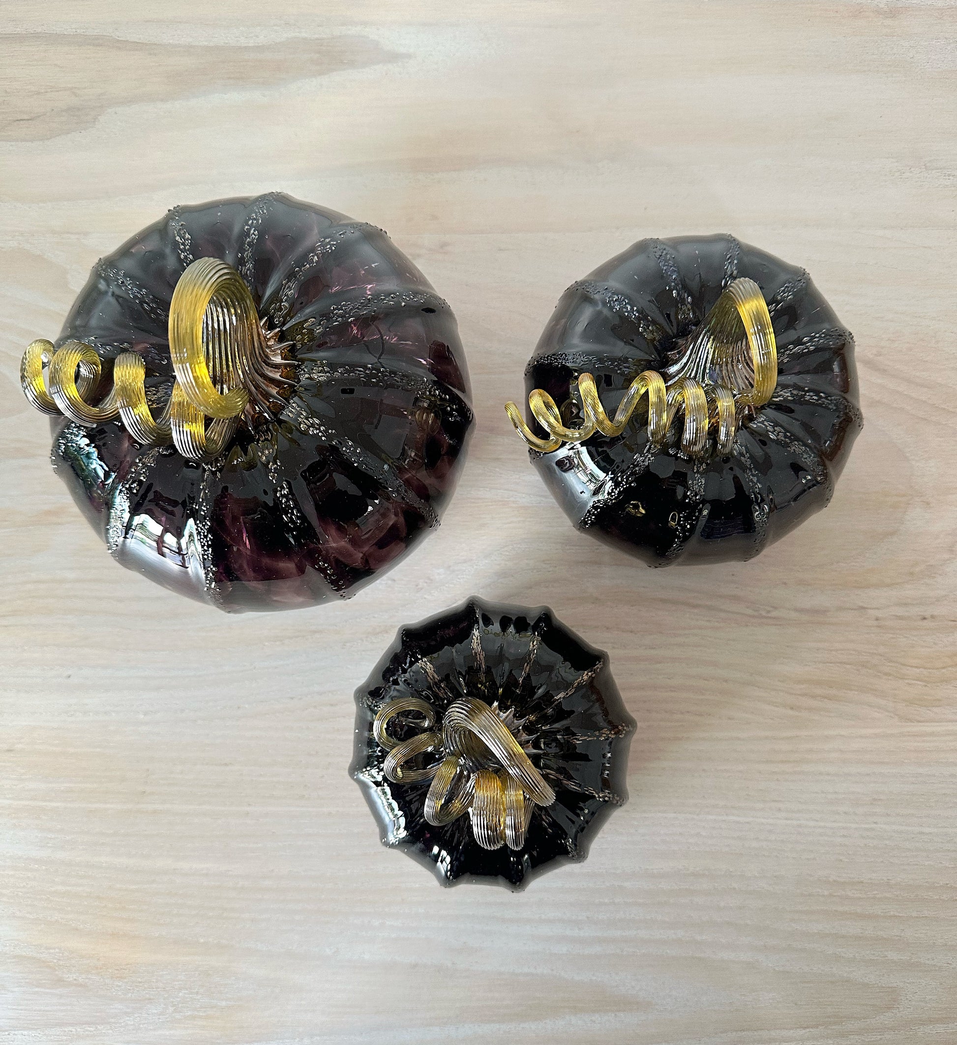 Handblown decorative glass pumpkins. Choose from a variety of earthy colors to add to any fall or year round decor.